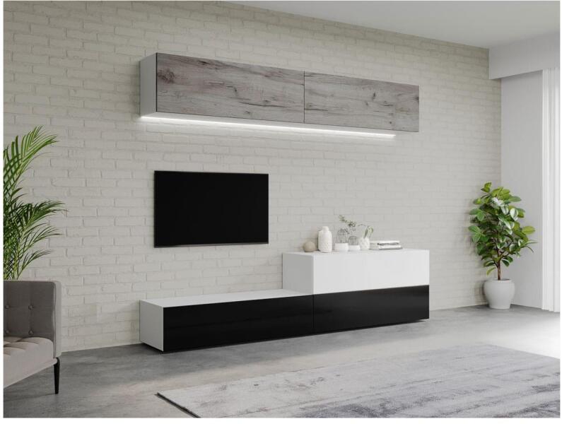 Lara nappali bútor szett - 2.1-es konfiguráció A Lara nappali bútor szett - 2.1-es konfiguráció egy elegáns modell, amely a modern belsőépítészet alapelveit képviseli a legjobban. A konfiguráció vízszintes és függőleges testekből áll, amelyek egyedi együttest alkotnak, és hasznosak ruhák vagy egyéb tárgyak tárolására a nappaliban. Külső méretek: