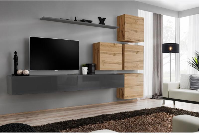 SWITCH 26 szekrénysor IX artisan tölgy-szürke SWITCH 26 IX szekrénysorunk tökéletes választás azok számára akik szeretik a kisebb-nagyobb tárgyaikat kéz alatt tudni. Hiszen 4 darab falipolc biztosítja a helyet tárgyaidnak, illetve még 2 darab RTV szekrény áll rendelkezésedre a távirányítóknak, iratoknak, média eszközeidnek.   Szekrénysor méretei: 2 db RTV Hossz: 120 cm Magasság: 30 cm Mélység: 40 cm 1 db lengő falipolc Hossz: 180 cm Magasság: 2,2 cm Mélység: 20 cm 4 db falipolc Hossz: 60 cm Magasság: 60 cm Mélység: 30 cm - Mindigbútor