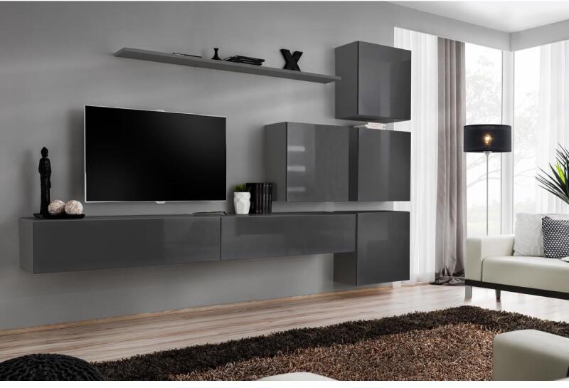SWITCH 26 szekrénysor IX szürkeSWITCH 26 IX szekrénysorunk tökéletes választás azok számára akik szeretik a kisebb-nagyobb tárgyaikat kéz alatt tudni. Hiszen 4 darab falipolc biztosítja a helyet tárgyaidnak, illetve még 2 darab RTV szekrény áll rendelkezésedre a távirányítóknak, iratoknak, média eszközeidnek.   Szekrénysor méretei: 2 db RTV Hossz: 120 cm Magasság: 30 cm Mélység: 40 cm 1 db lengő falipolc Hossz: 180 cm Magasság: 2,2 cm Mélység: 20 cm 4 db falipolc Hossz: 60 cm Magasság: 60 cm Mélység: 30 cm - Mindigbútor
