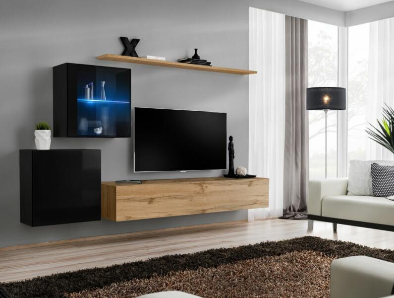 Szobák > Nappali szoba bútor > Szekrénysor - SWITCH 26 szekrénysor XV fekete-artisan tölgy SWITCH 26 V szekrénysorunk a nappaliban tökéletes kiegészítő elem, de egy hálószobában is tökéletesen megállja a helyét. Matt korpusszal és fényes előlappal rendelkezik aminek köszönhetően bármilyen stílus kedvelője is legyél, biztosan ez lesz a jó választás. Szekrénysor méretei: 2 db falipolc Hossz: 60 cm Magasság: 60 cm Mélység: 30 cm 1 db RTV Hossz: 180 cm Magasság: 30 cm Mélység: 40 cm 1 db lengő falipolc Hossz: 180 cm Magasság: 2,2 cm Mélység: 20 cm