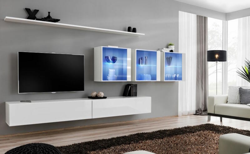 Szobák > Nappali szoba bútor > Szekrénysor - SWITCH 26 szekrénysor XVII fehér SWITCH 26 VII szekrénysorunk kisebb nappalikba, de akár hálószobákban is tökéletesen megállja a helyét. Széles színválasztékának köszönhetően legyen bármilyen színkörnyezet, biztosan megtalálod a neked megfelelőt!  Szekrénysor méretei: 2 db RTV Hossz: 120 cm Magasság: 30 cm Mélység: 40 cm 2 db függő falipolc Hossz: 120 cm Magasság: 2,2 cm Mélység: 20 cm 3 db falipolc Hossz: 60 cm Magasság: 60 cm Mélység: 30 cm