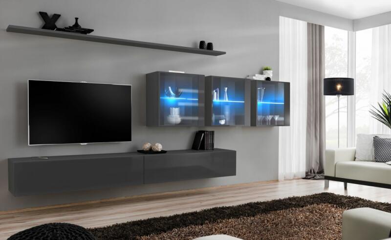 Szobák > Nappali szoba bútor > Szekrénysor - SWITCH 26 szekrénysor XVII szürke SWITCH 26 VII szekrénysorunk kisebb nappalikba, de akár hálószobákban is tökéletesen megállja a helyét. Széles színválasztékának köszönhetően legyen bármilyen színkörnyezet, biztosan megtalálod a neked megfelelőt!  Szekrénysor méretei: 2 db RTV Hossz: 120 cm Magasság: 30 cm Mélység: 40 cm 2 db függő falipolc Hossz: 120 cm Magasság: 2,2 cm Mélység: 20 cm 3 db falipolc Hossz: 60 cm Magasság: 60 cm Mélység: 30 cm