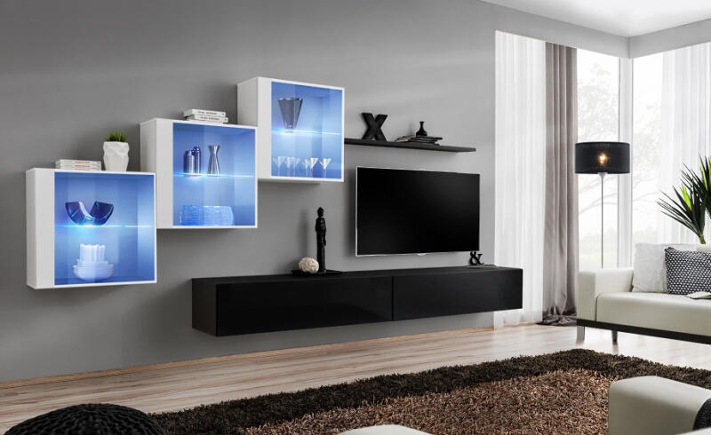SWITCH 26 szekrénysor XX fehér-fekete SWITCH 26 X szekrénysorunk letisztult, egyszerű külsejével beleillik bármilyen környezetbe. Matt corpusza és fényes ajtajai modern külsőt kiviteleznek a szettnek. Szekrénysor méretei: 3 db falipolc Hossz: 60 cn Magasság: 60 cm Mélység: 30 cm 2 db RTV Hossz: 120 cm Magasság: 30 cm Mélység: 40 cm 1 db lengő falipolc Hossz: 60 cm Magasság: 2,2 cm Mélység: 20 cm