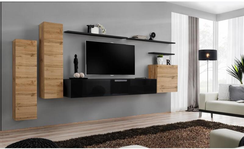 SWITCH 27 szekrénysor I artisan-fekete SWITCH 27 I szekrénysorunk letisztult, modern látványt nyújt. Fényes frontja és matt corpusa bármely nappaliban megállja a helyét. Szekrénysor méretei: 2 db függő vitrin Hossz: 40 cm Magasság: 120 cm Mélység: 30 cm 1 db RTV Hossz: 180 cm Magasság: 30 cm Mélység: 40 cm 2 db lengő polc Hossz: 120 cm Magasság: 2,2 cm Mélység: 20 cm 1 db lengő polc Hossz: 60 cm Magasság: 2,2 cm Mélység: 20 cm 1 db fali polc Hossz: 60 cm Magasság: 60 cm Mélység: 30 cm - Mindigbútor
