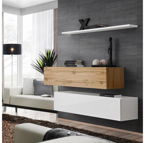 SWITCH 27 szekrénysor SB2 fehér-artisan SWITCH 27 SB2 szekrénysorunk kis helyigényének köszönhetően bárhova könnyen elhelyezhető. Matt corpusza és fényes frontja mégi elengáns külsőt kölcsönöz kis mérete ellenére. Méretei: 2db RTV Hossz: 120 cm Magasság: 30 cm Mélység: 40 cm 1 db lengőpolc Hossz: 120 cm Magasság: 2,2 cm Mélység: 20 cm - Mindigbútor